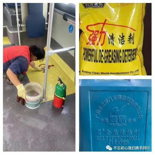 公交車的上車門腳踏板是乘客進(jìn)入公交車的“第一步”,也是公交車內(nèi)衛(wèi)生情況的“第一眼”,但是對于公交車的清洗來說,這“第一步”和“第一眼”卻是最難清理的區(qū)域。二公司四隊(duì)和三公司二隊(duì)在發(fā)現(xiàn)傳統(tǒng)清潔劑和洗衣粉的清潔效果不理想后另辟蹊徑,通過網(wǎng)購的方式,購買車輛專用清洗劑。將原液和水進(jìn)行配比后,對上下車門腳踏板、車廂內(nèi)部地板、以及地板與座椅的邊緣這些平時難以清理的地方進(jìn)行浸泡后,再用清潔刷清理,效果非常好,讓公交車顯露原貌,“金蟬脫殼”!車輛專用清洗劑的優(yōu)點(diǎn)是:1、沒有特殊味道,保證車廂空氣良好;2、清潔人員進(jìn)行洗刷操作時,沒有腐蝕性,不傷手;3、泡沫少,避免地板出現(xiàn)白繭現(xiàn)象;4、經(jīng)濟(jì)實(shí)惠,配比操作簡單。