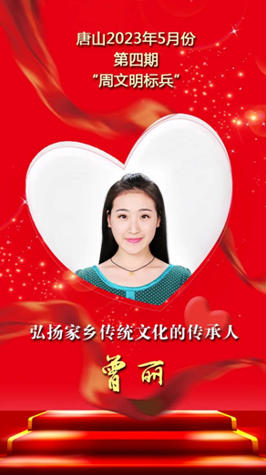 曾麗,樂亭縣文化廣電和旅游局文化服務中心職工、樂亭大鼓第八代傳人。她出身曲藝之家,自幼學習樂亭大鼓演唱,大學畢業后回到家鄉投身基層文化建設,系統完整地繼承了樂亭大鼓多個曲目和長篇書《小八義》,表演有較強的藝術感染力。在創作上,她既能與流派一脈相承,又秉持守正創新和貼近實際、貼近生活、貼近群眾的創作理念,不斷謳歌時代英雄,寫身邊人、唱身邊事,創作了《大腳丫》《重溫紅燈記》《游樂亭》等作品,受到各界一致認可。她每年參與線上、線下志愿服務慰問和公益演出近300場次,使樂亭大鼓藝術發展成為謳歌時代、研究民間倫理道德及社會關系的“百科全書”。