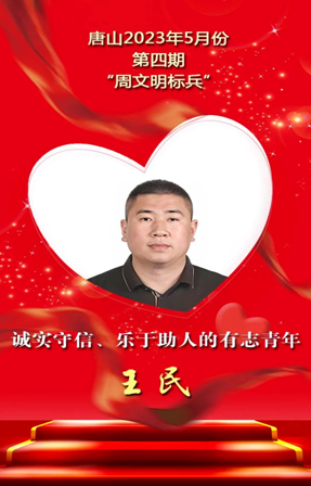 日前,唐山市“文明標兵”評選發布組委會辦公室公布了2023年5月份第四期“周文明標兵”名單。他們是: