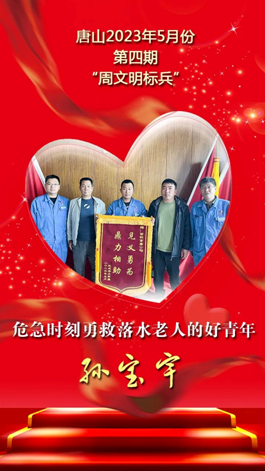 孫寶宇,曹妃甸區首鋼京唐鋼鐵聯合有限責任公司職工。4月25日晚,他在曹妃甸森林公園健身完正準備回家,突然發現一輛老年代步車側翻在河里,隱約地看到有人被困車內。他來不及多想,把手機往同伴手里一扔就跳入了河中。4月的河水還很冰冷,孫寶宇蹚水過去抓到了車,借助岸上同伴打出的手機微光,看到一位老人被卡在車內,河水已淹至脖子,情況危急。他一邊安撫老人情緒,一邊用力挪動卡住老人身體的車把,并站在水里奮力托起老人。這時,許多路人也自發加入了救援隊伍,最終大家合力將老人救上了岸,孫寶宇又把自己的外套為渾身濕透的老人披裹上,老人也逐漸恢復了意識,一直到把老人安全送上其家人的車后,孫寶宇才安心離開。