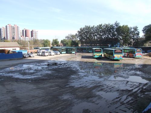 “一腳深、一腳淺,下雨天屋內也打傘。”這就是對2014年前的藍天樓車場的真實寫照。院內的三間舊營房就是路隊干部職工的家,隊管辦公室、職工休息室、站員調度室、食堂統統擠在這狹小的三間房內,幾輛老舊報廢的公交車,成了隊里的臨時庫房。幾塊板搭起來的小棚兒,變成了大家的廁所。冬天的時候,西北風帶著陣陣寒意,卷著路面的塵土,刮的大家睜不開眼,車開起來時,就像戰爭大片一樣,煙塵四起。夏天的時候,大家每天最關注的就是天氣預報,他們說:“夏天再熱也不怕,就怕老天把雨下。”為什么這么說?原因是車場沒有完善的排水設施,一到下雨天就積水,藍天樓車場立刻變成藍天湖車場。站點淹了、地溝淹了、廁所淹了……干部職工雨聲就是命令,大家動手齊上陣,有的拿笤帚,有的拿盆,利用手里能用到的工具,抓緊一切時間把水排干,為的是讓乘客的腳下不再泥濘,為的是讓我們的公交車準時駛出車場。
