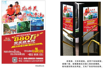 單面透車貼是發布于公交車內下車門處,位置巧妙,乘客下車想不留意都很難。廣告效果不言而喻。