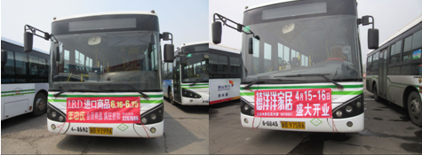 車前條幅是以橫幅廣告的形式懸掛于公交車車頭,伴隨著公交車這一載體每天穿梭于市區的大街小巷。