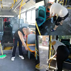下午,路隊(duì)和分公司管理人員都來到路線,同保潔員一起清潔車廂內(nèi)外,清理衛(wèi)生死角。