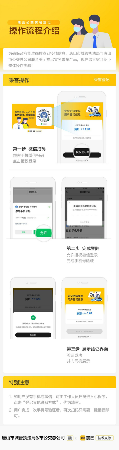 該實名制登記系統是唐山市城管執法局、唐山公交總公司與美團公交合作開發,已覆蓋所有公交車,實現了“一車一碼”。登記的相關信息使用專用服務器予以加密保存,既杜絕了登記信息泄露的風險,又可有效減少因手工登記帶來的接觸風險。在此倡議乘客朋友積極配合、文明乘車,有序排隊掃碼登記,請予理解和支持。