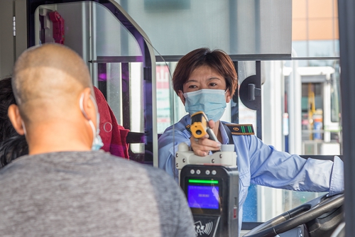 嚴格落實常態化疫情防控工作舉措,運營車輛堅持消毒通風,重點對車廂地板、司機方向盤、車窗開關、座椅扶手、車內欄桿、刷卡機、投幣口等部位進行消殺,加強通風換氣,保持空氣流通。公交司乘人員佩戴口罩上崗,同時提醒乘客佩戴口罩乘車,共同打造安全健康的出行環境,讓乘客安心上車。