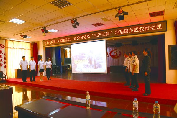 三嚴三實專題教育開展以來,廣大黨員干部認真按照總公司黨委制定的教育方案,一個環節一個環節地抓落實。為讓教育更富有吸引力,實效更突出,黨委編排了一堂與眾不同的黨課,采取了經典紅歌演唱、優秀黨員事跡誦讀、普通黨員暢談體會的形式進行宣傳教育。課堂上,大家共同聆聽優秀共產黨人李大釗、焦裕祿的事跡誦讀,觀看優秀共產黨員楊善洲事跡介紹的DV短片,來自基層的三名優秀駕駛員、共產黨員竇玉海、周麗媛和鄭玉曉以詩歌的形式講述了發生在崗位上的真實故事。各單位黨員代表也走上臺,結合自身崗位實際,講述學習的心得感受。城管局副調研員張祚建參加了黨課走進三公司活動,給予了很高的評價,認為黨課教育形式新,內容實,受震撼,希望把這種學習上的創新引入到工作中,落腳在實字上。