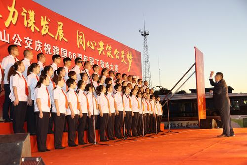 清風(fēng)送爽,丹桂飄香。9月25日,唐山公交舉行了慶祝建國(guó)66周年“凝心聚力謀發(fā)展,同心共筑中國(guó)夢(mèng)”職工歌詠大賽。所屬各單位共11個(gè)代表隊(duì),400多名干部職工參加了比賽。除聘請(qǐng)專(zhuān)業(yè)評(píng)委以外,總經(jīng)理趙俊良,黨委書(shū)記、副總經(jīng)理夏保良同志以及其他領(lǐng)導(dǎo)班子成員也擔(dān)任了評(píng)委。比賽現(xiàn)場(chǎng),參賽隊(duì)伍的演唱旋律鏗鏘,聲音宏亮,吐字清晰,感情充沛,富有感染力,一曲曲大合唱展顯了公交人的自信,唱出了公交人的情懷,也唱出了公交干部職工的良好精神風(fēng)貌和對(duì)企業(yè)美好明天的熱情祝福。現(xiàn)場(chǎng)激昂的旋律感染著每一位在場(chǎng)觀眾,真摯的表演、精彩的動(dòng)作設(shè)計(jì)將大賽一次次推向高潮,也博得了觀眾陣陣掌聲。